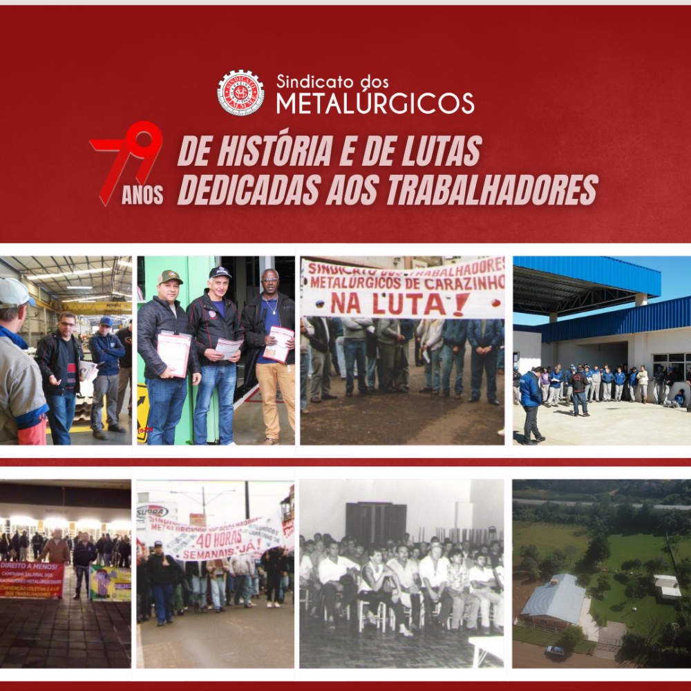 O Sindicato dos Metalúrgicos de Carazinho chega aos 79 anos de fundação reafirmando sua trajetória de resistência, união e dedicação à classe trabalhadora. Desde sua criação, a entidade esteve à frente de grandes lutas que transformaram a vida dos metalúrgicos e de toda a sociedade brasileira.